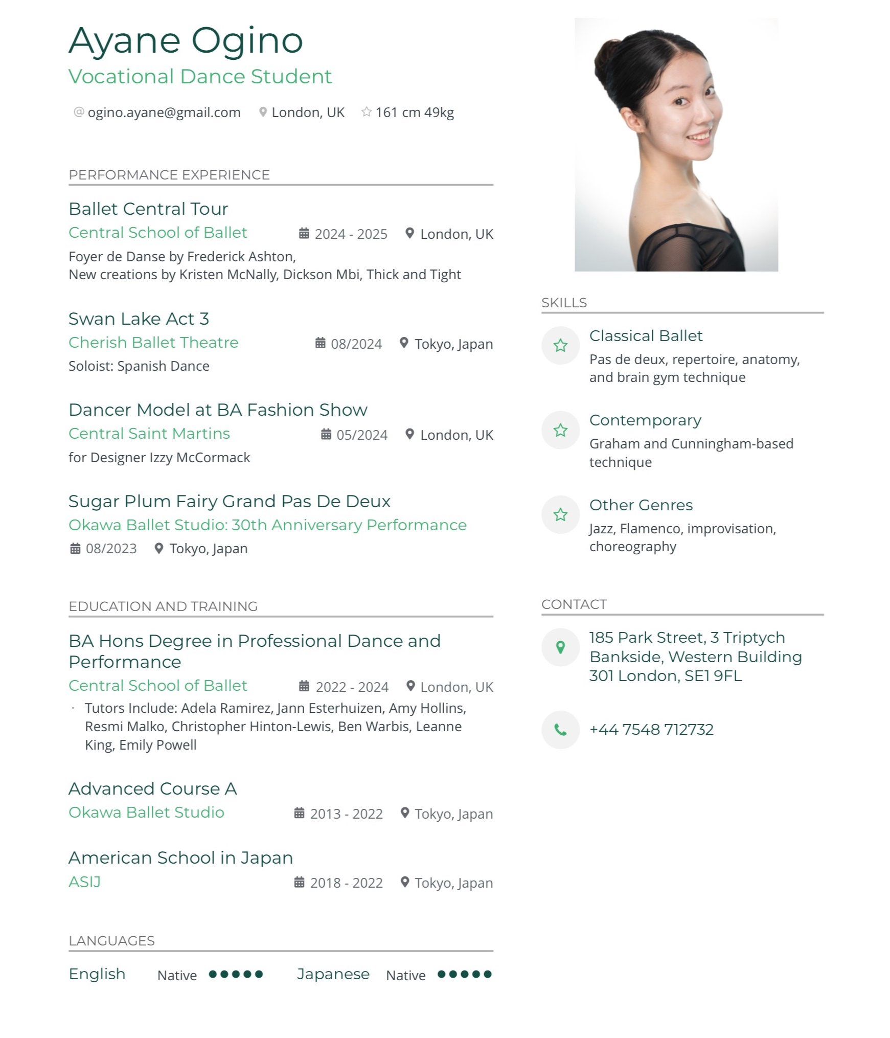 All dancersAyane OginoNationalitiesJPPractice4 stylesPractice4What they danceStylesClassical BalletNeoclassicalContemporaryModernGallery3Selected images