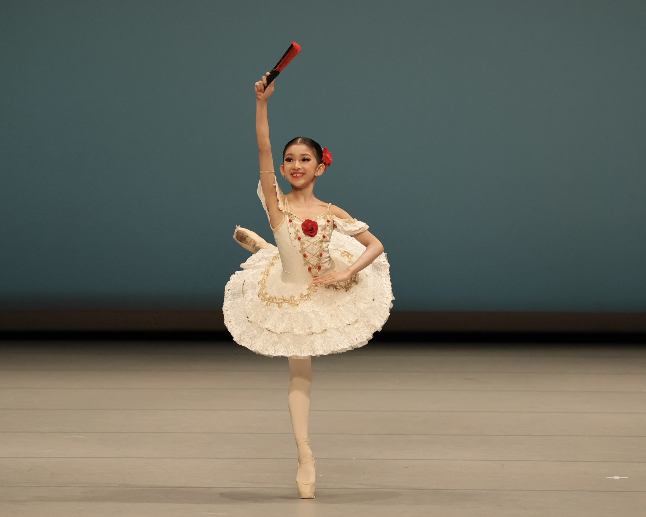 I'm Benica from Allee Ballet Studio. This year, I will dance Kitri with energy and cheerfulness. Thank you.