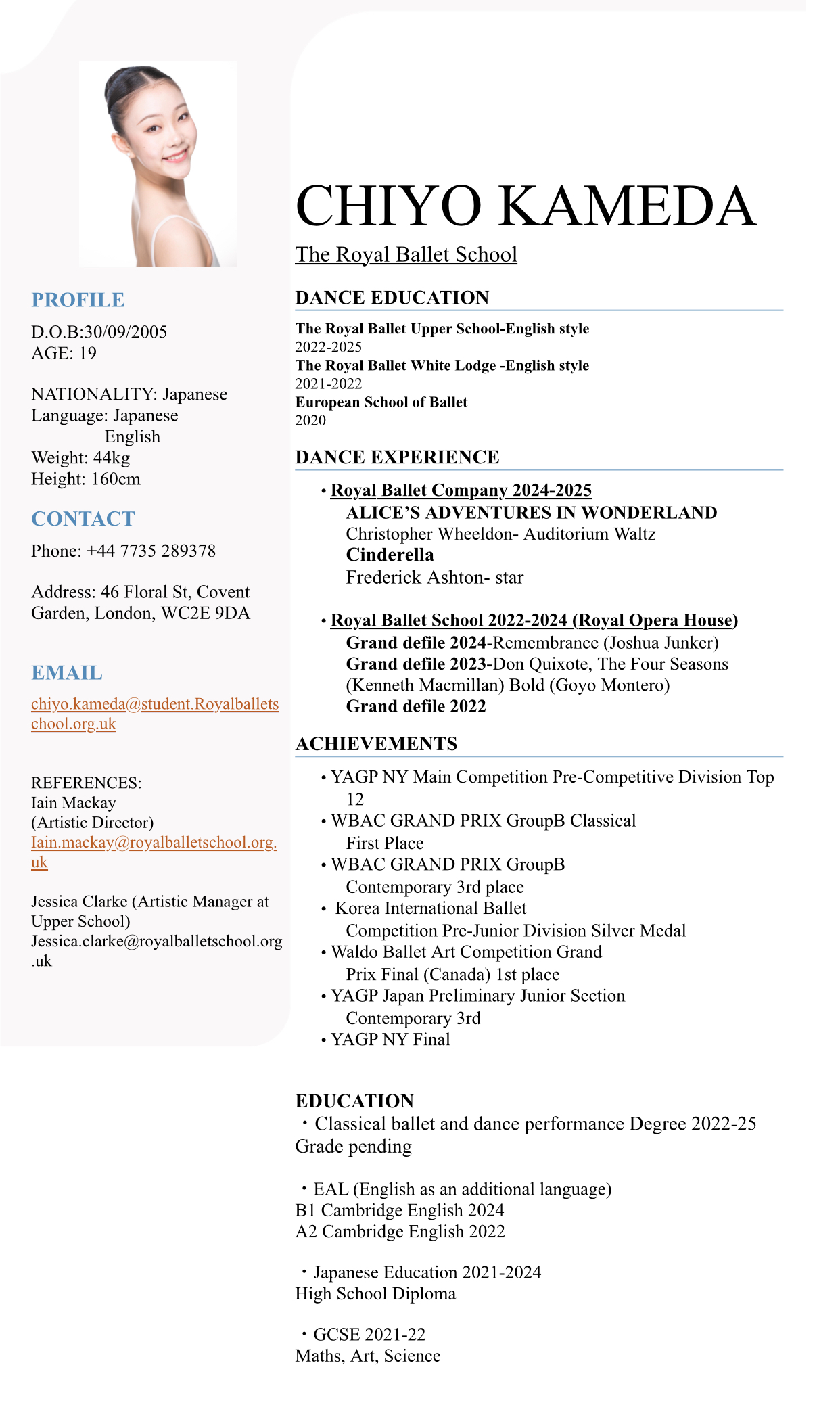 Chiyo Kameda /The Royal Ballet School