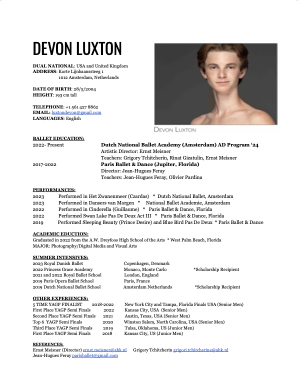 6'4" /193 cm Height Dual National UK/USA Ballett Dortmund Junior Company 2024-2026