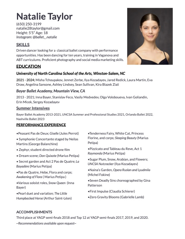 All dancersNatalie TaylorNationalitiesUSPractice3 stylesPractice3What they danceStylesClassical BalletContemporaryNeoclassicalCurrently seekingCompanyGallery8Selected images